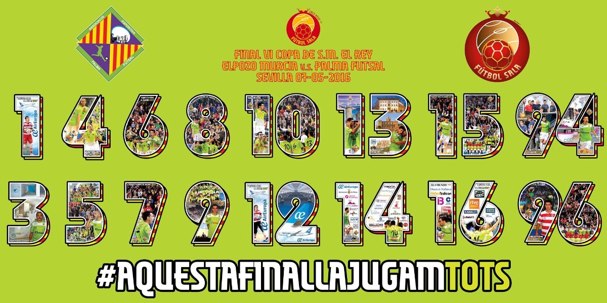 También uno de los más prestigiosos Clubes de Fútbol Sala nacional, el Palma Futsal vistió nuestros FOTODORSALES® para la Campaña "Esta Final la jugamos todos" en la final de la Copa de S.M. El Rey en 2016, la primera final de la historia del CLub balear.